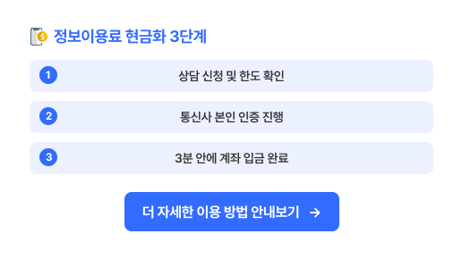 지금 바로, 정보이용료 현금화 상담받아보세요!
