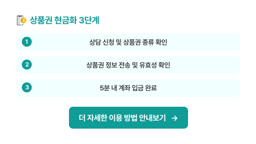 사용하지 않는 상품권이 있으시다면 지금 바로 현금으로 바꿔보세요!