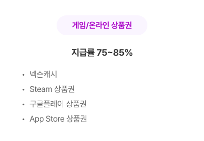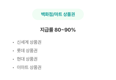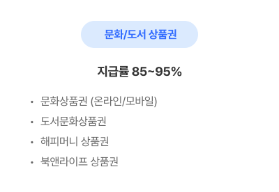다양한 상품권 지원: 문화상품권, 해피머니, 도서상품권, 신세계상품권 등 모든 상품권 취급